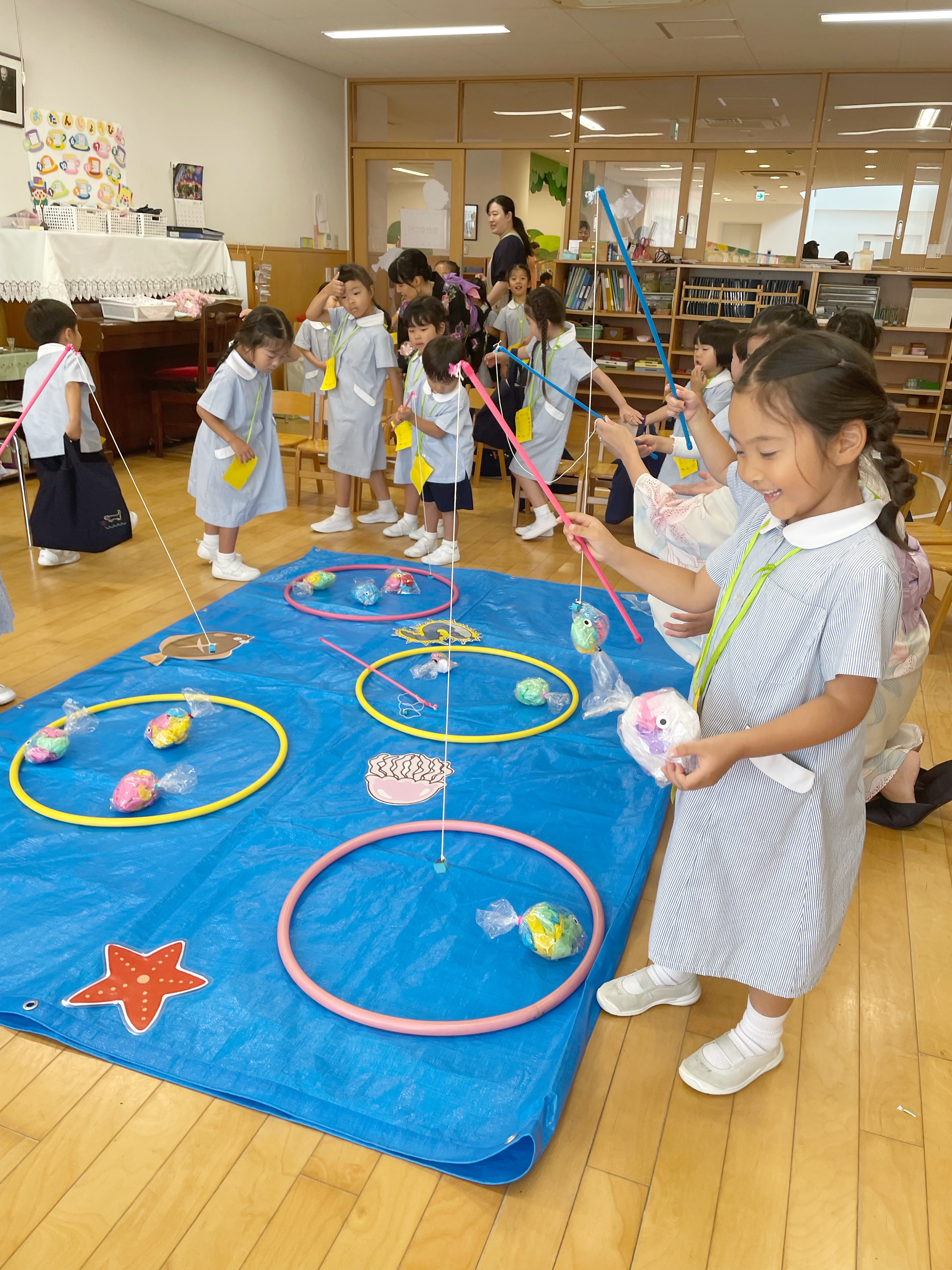 魚釣りや輪投げ、玉入れやスリッパ投げを楽しみました。