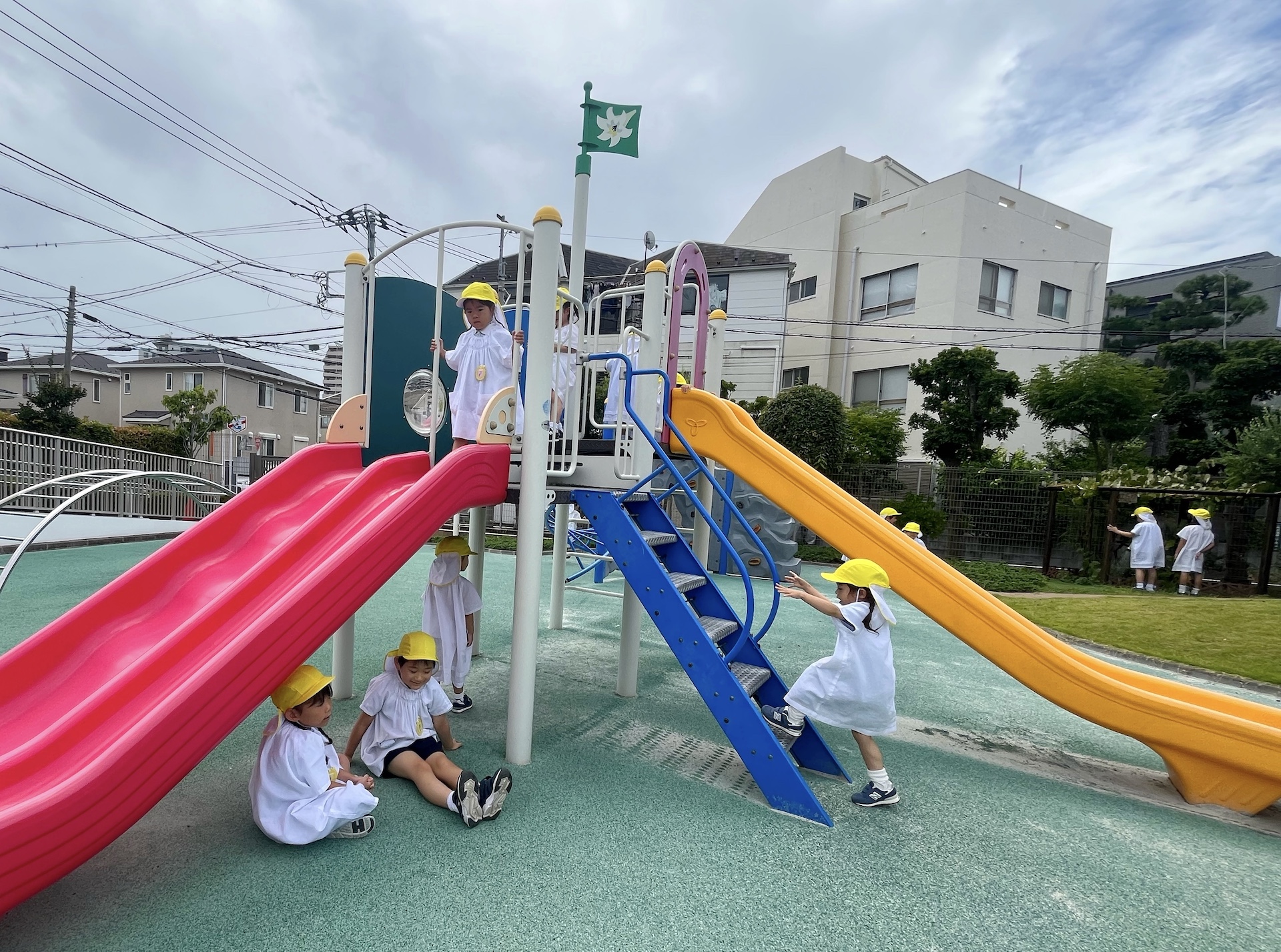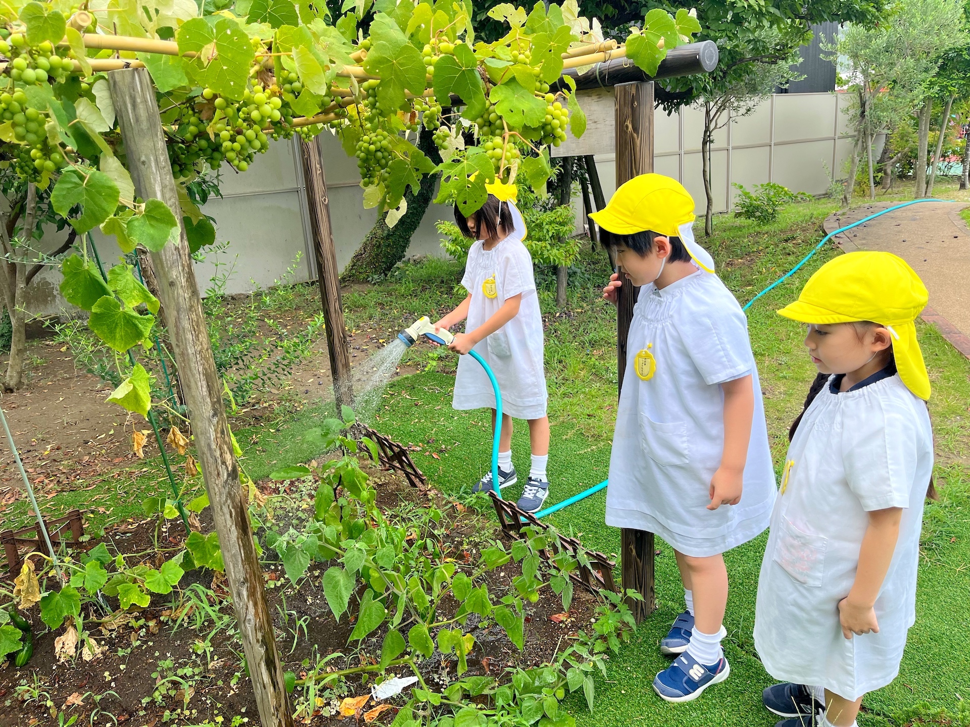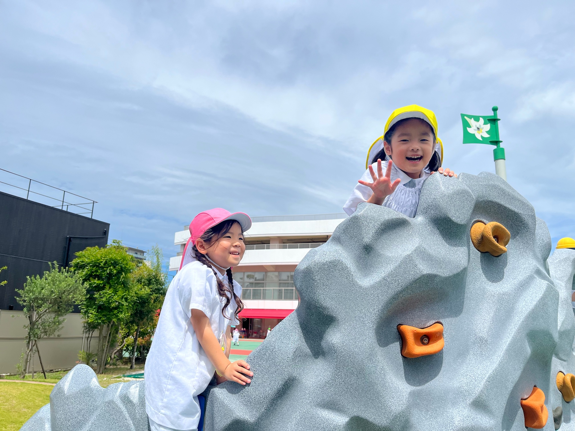 日常 2025.07.25 外遊びの様子 1学期後半、外遊び中に畑の様子を見て 「暑いからお水欲しいよね!」 と気付いた子どもたち。 たっぷりと水やりをして観察し お世話を楽しんでいました♪ また滑り台の下でおしゃべりをしていたり 繰り返しロッククライミングに登ったり 自由に自分時間を過ごしていました。
