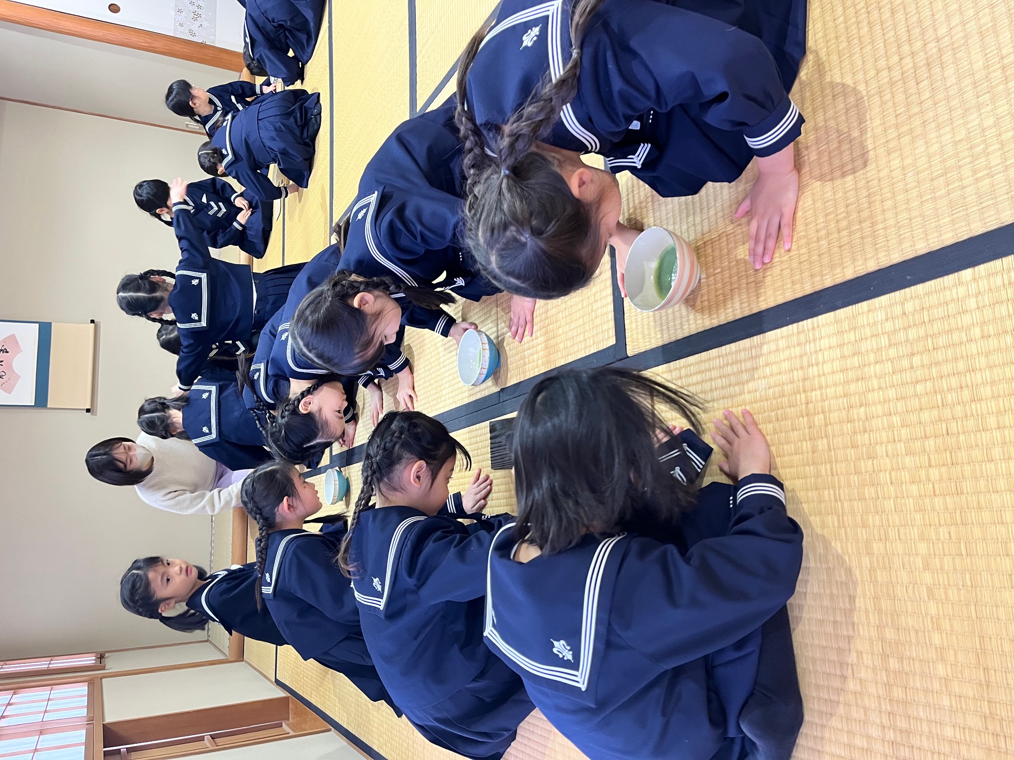 先日は茶道の先生にいらしていただき、小学校の和室をお借りして茶道体験をいたしました。