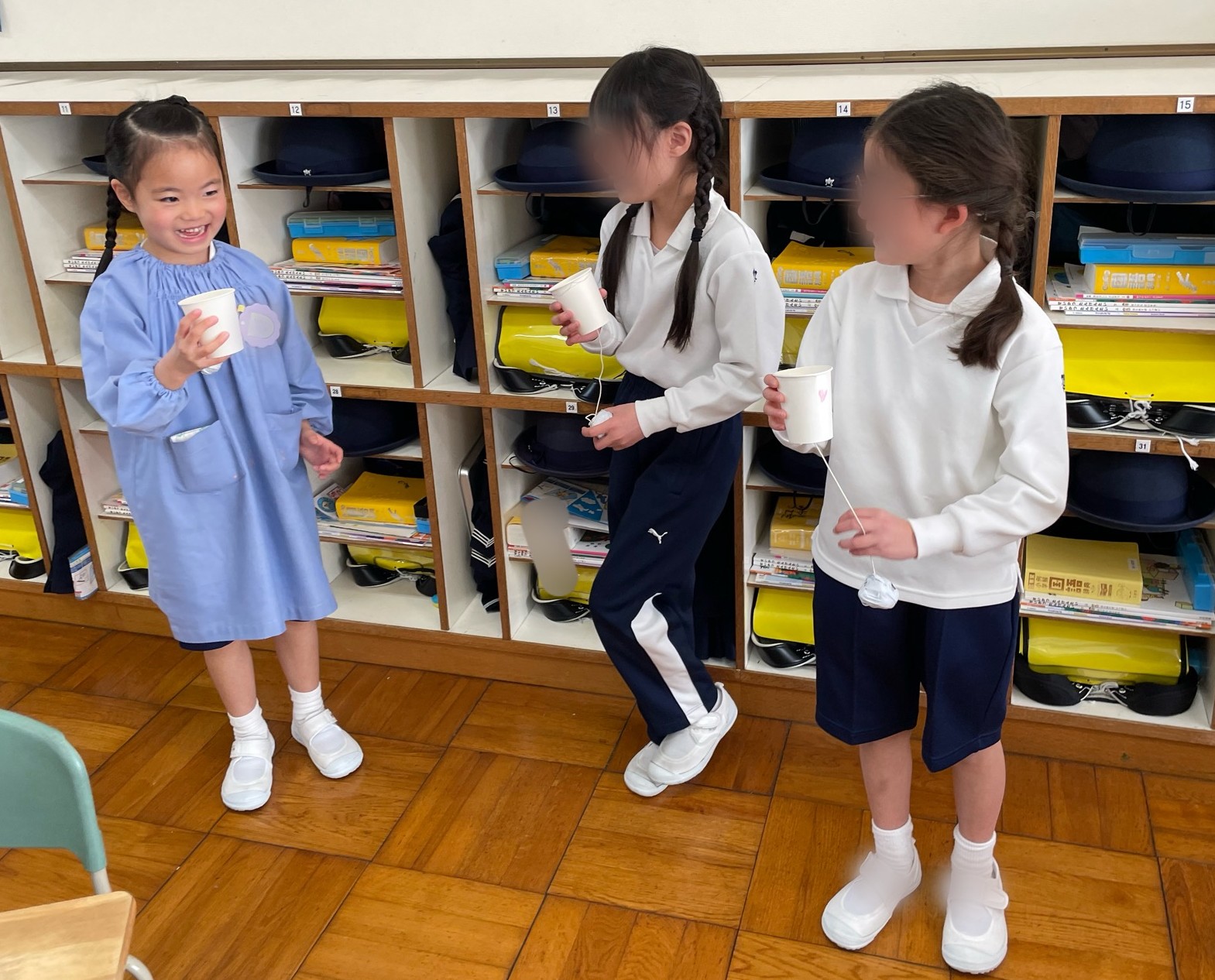 けんだま作りでは、「大丈夫?一緒にやろう!」「ここがやりにくいよね。」と1年生が年長さんを気にかけながら、優しく教えてくださいました。